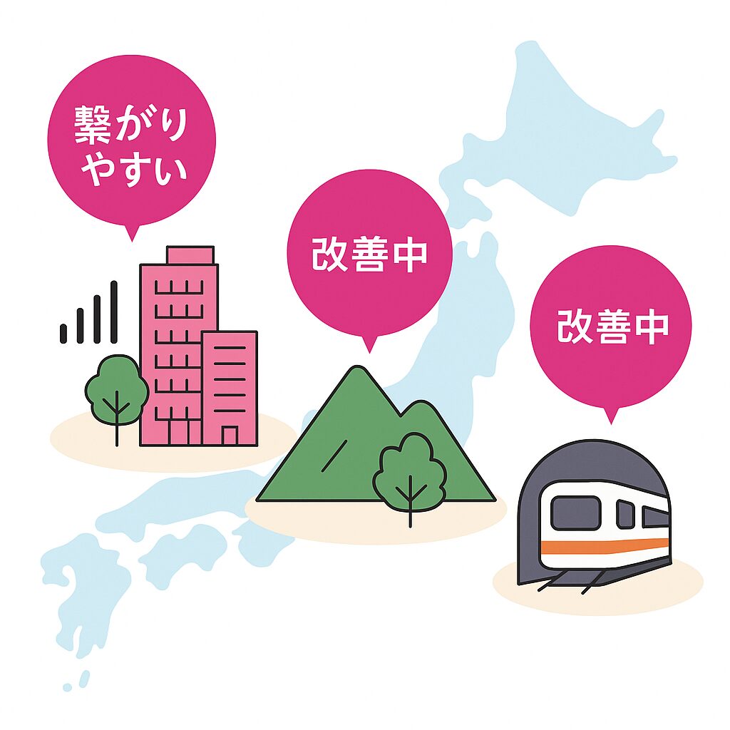 - 地方や地下ではまだつながりにくい場所も残る